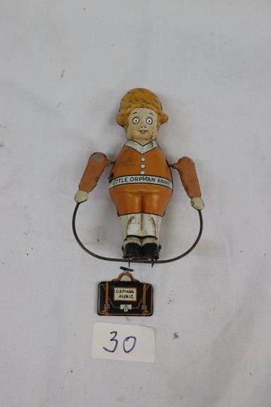 LOT 30 - ORPHAN ANNIE WIND UP TIN TOY (NO KEY)