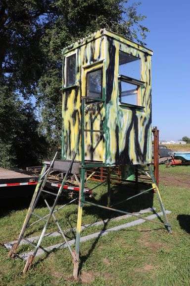 LOT 95 - DEER STAND WITH METAL STAND, LADDER, SKIDS