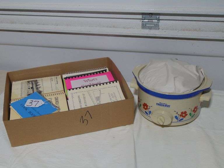 LOT 37 - CROCK POT, BOX OF COOK BOOKS