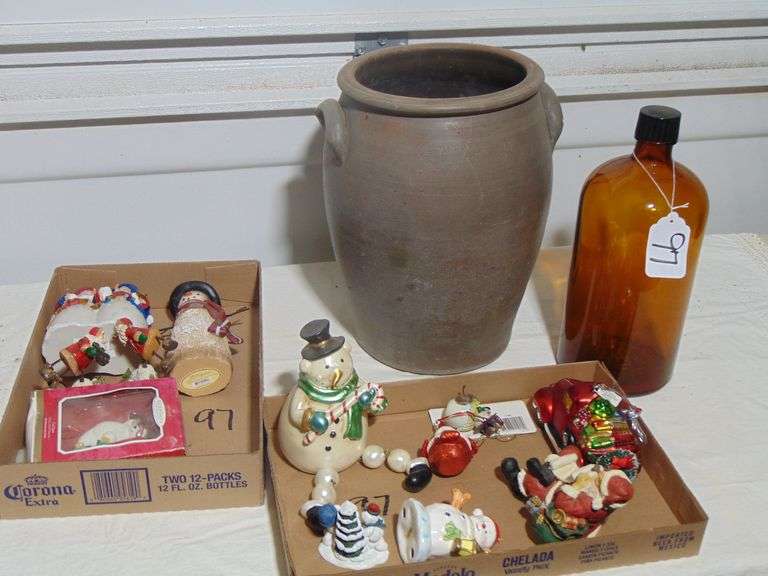 LOT 97 - XMAS DECOR, LG DECO VASE, BOTTLE