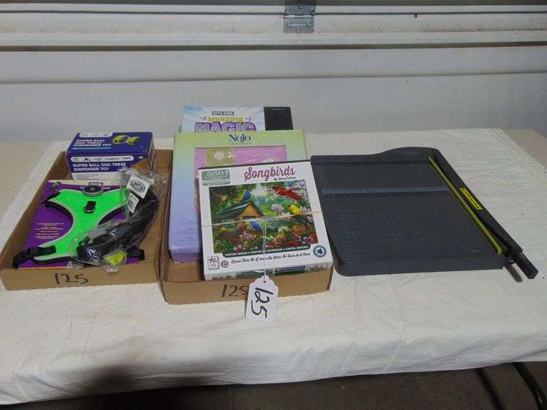 LOT 125 - PAPER CUTTER, DOG COLLAR, PUZZLE, DECOR