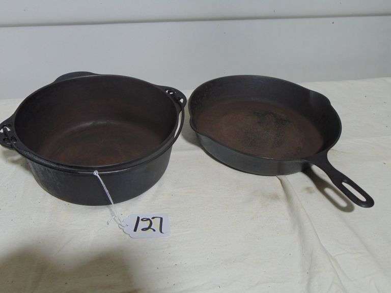 LOT 127 - CAST IRON GRISSWALD #8 NO LID AND CAST IRON SKILLET