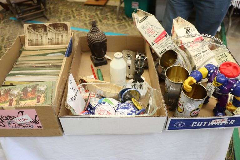 LOT 412 - STEREO CARDS, CANS, BUTTONS