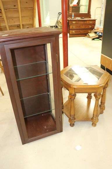 LOT 358 - DISPLAY CASE & SMALL TABLE