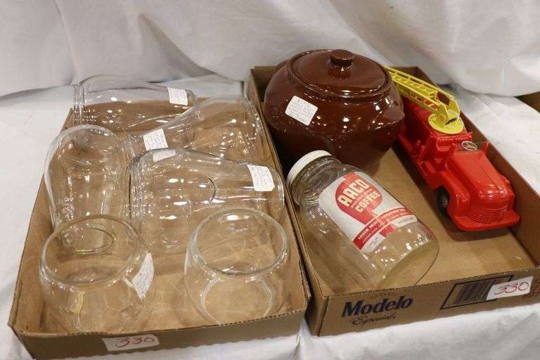 LOT 330 - LANTERN GLOBES, BEAN POT, COFFEE JAR