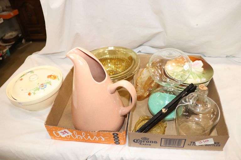 LOT 310 - PITCHER, COVERED BOWL PLATES, CARNIVAL GLASS DISH