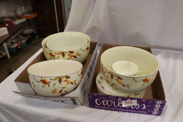 LOT 308 - HALLS JEWEL TEA BOWLS & PLATTER