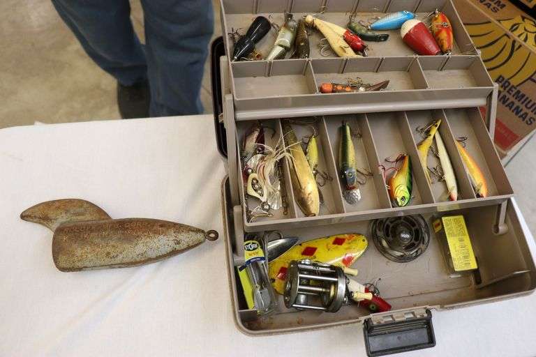 LOT 293 - TACKLE BOX WITH LURES, DOWNRIGGER
