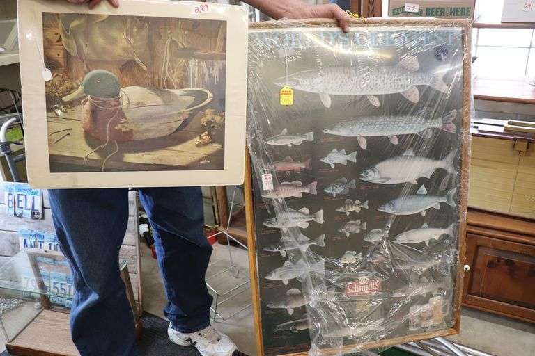 LOT 289 - SCHMIDT'S BEER FISH ADVERTISING POSTER & DUCK PRINT