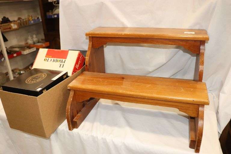 LOT 156 - WOOD STEP STOOL & CIGAR BOXES