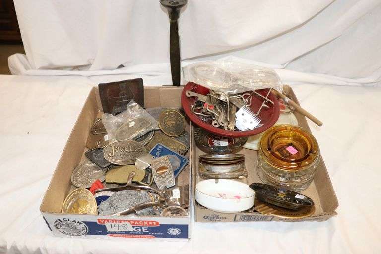 LOT 148 - BELT BUCKLES, ASH TRAYS, BOTTLE OPENERS