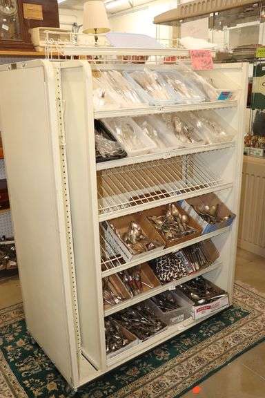 LOT 138 - DOUBLE SIDED SHELVING UNIT ON WHEELS