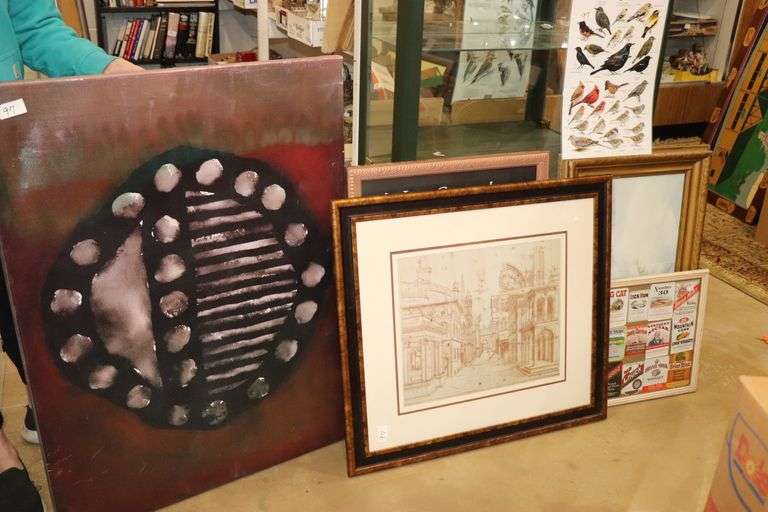LOT 97 - ASSORTED SIGNS, FRAMED ART, WATER COLOR ON CANVAS