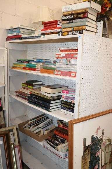 LOT 99 - DOUBLE SIDED WHITE BOOKSHELF & BOOKS