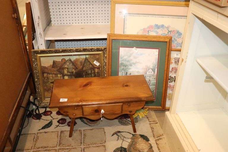 LOT 95 - SMALL BENCH, FRAMED PRINTS