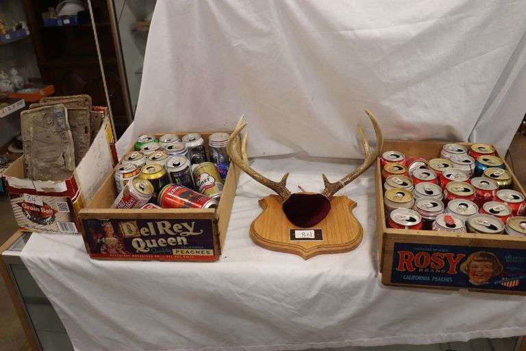 LOT 84 - LISC PLATES, ANTER MOUNT, WOOD BOXES WITH CANS