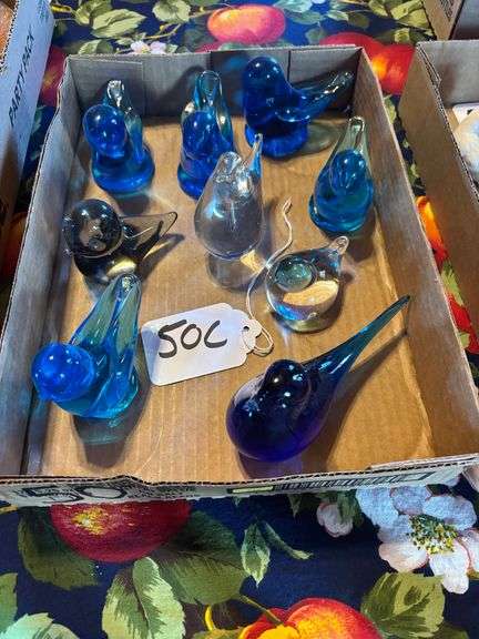 LOT 50C - GLASS PAPER WEIGHTS BLUE BIRDS