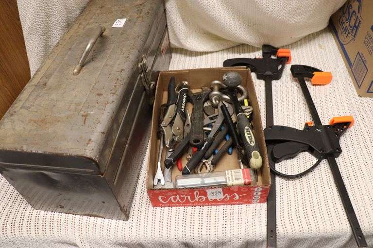 LOT 329 - WRENCHES, PLYERS, TOOLS, TOOL BOX