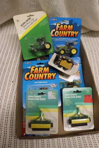 LOT 229 - ASSORTED SMALL FARM TOYS, JD GRAIN DRILLS