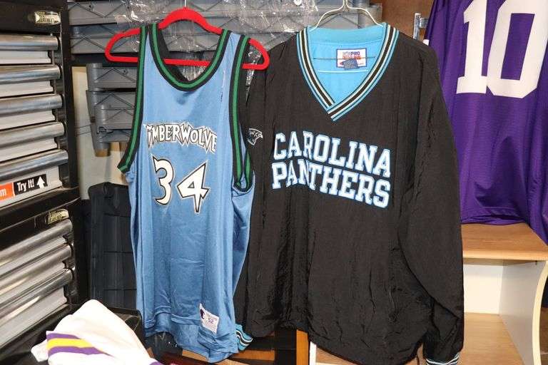 LOT 173 - TIMBERWOLVES JERSEY, PANTHERS COAT