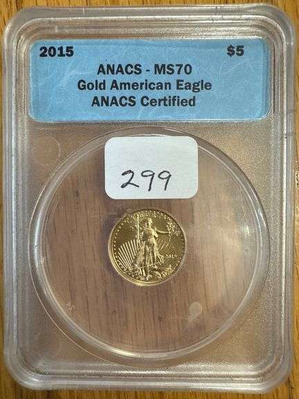 LOT 299 - 2015 $5 GOLD “Eagle” MS70 ANACS