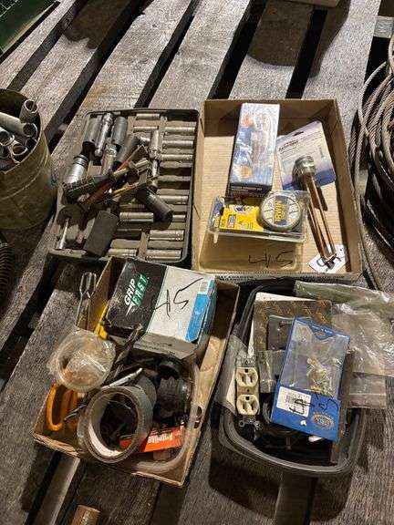 LOT 45 - 4 BOXES SOCKETS, DIE GRINDER, TAPE MEASURE, SCREWS, SPRINGS