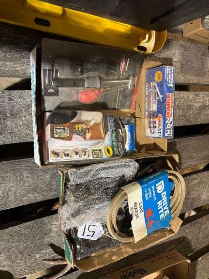 LOT 51 - 2 BOXES DIE GRINDER, SOLDERING IRON, V BELTS