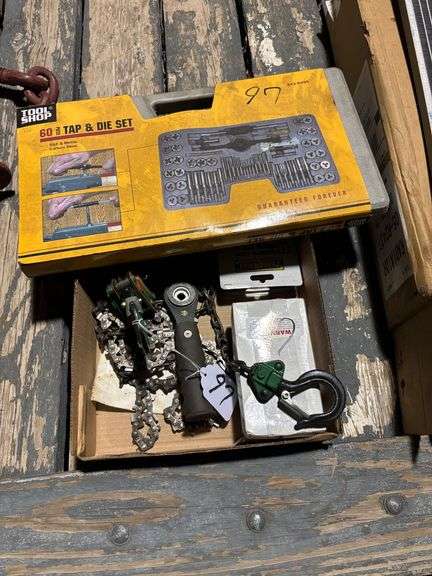 LOT 97 - TAP & DIE SET BRAND NEW, CHAIN HOIST, CHAIN SAW CHAIN
